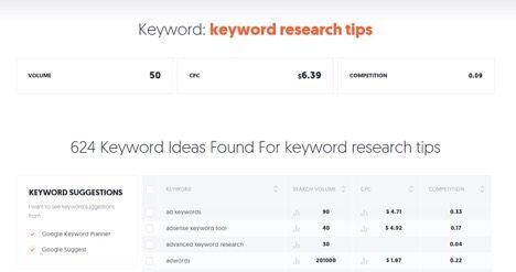 For example, let’s go ahead and use “keyword research tips” as our seed keyword. This will yield the following results: