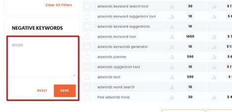 The second method is to specify “Negative Keywords” that you’d like to exclude in your research. This is useful if you want to eliminate branded keywords being used by your competitors.